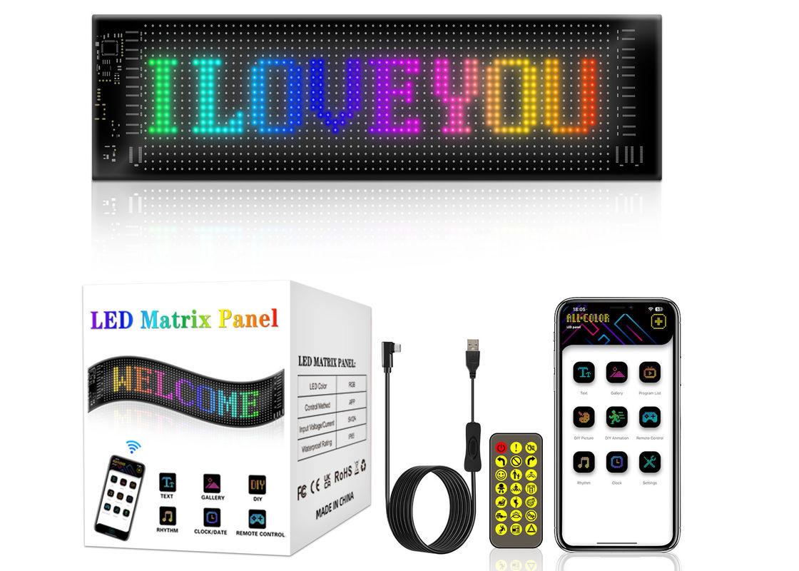 Pantalla LED de letrero de control de aplicaciones 20*64 Flexible USB Programable Mensaje personalizado de desplazamiento Letreros de coche Pantalla digital